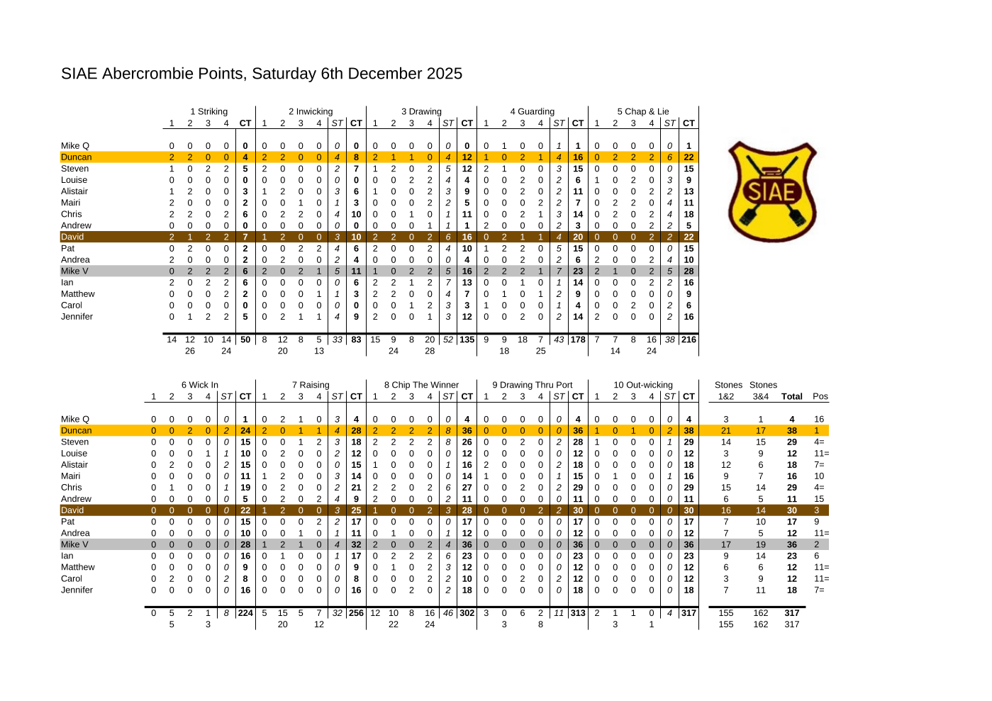 MPL Bonspiel 2024-2025 - SIAE Scores