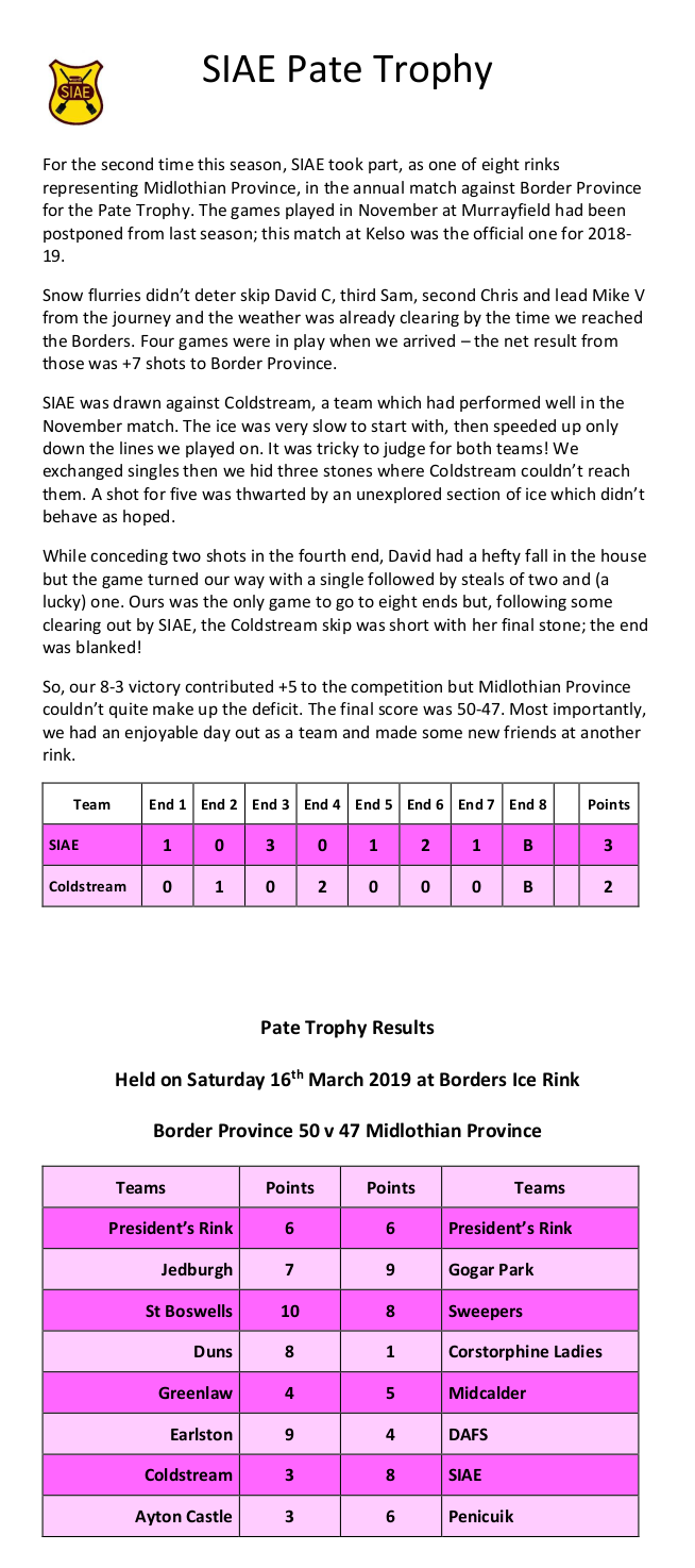 History of SIAE Curling Club