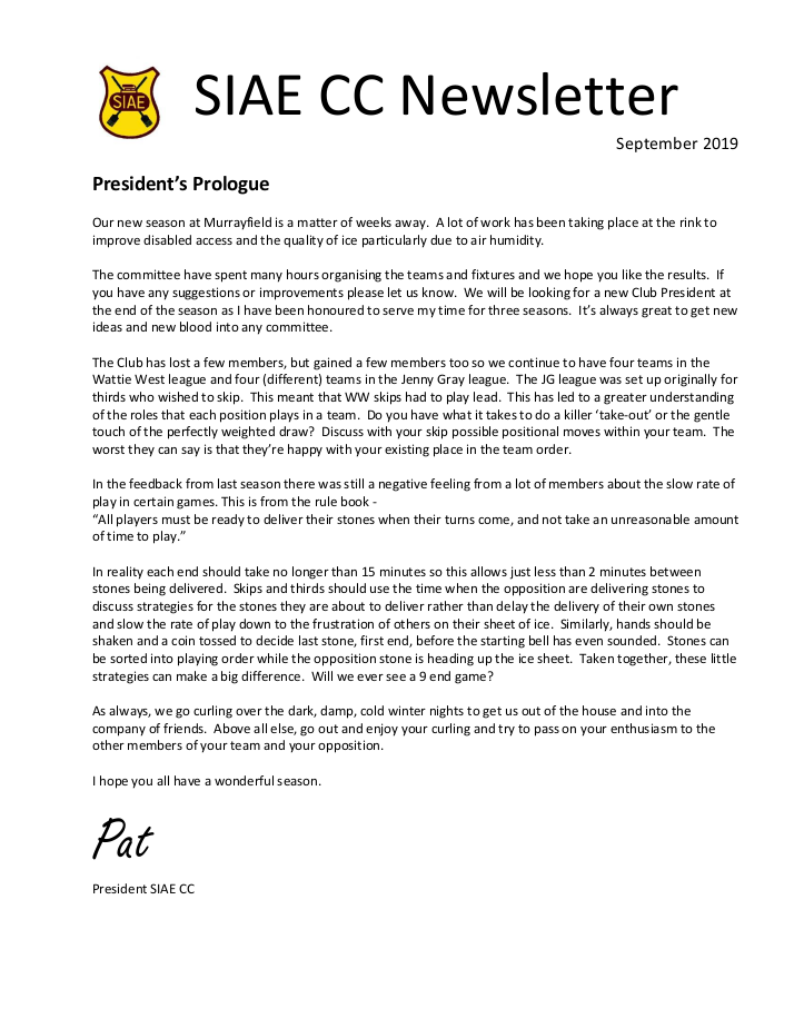 MPL Bonspiel 2025-2026 - SIAE Newsletter Cutting