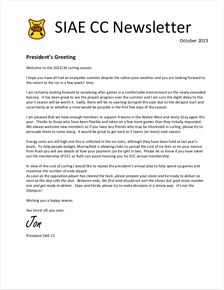 MPL Bonspiel 2025-2026 - SIAE Newsletter Cutting