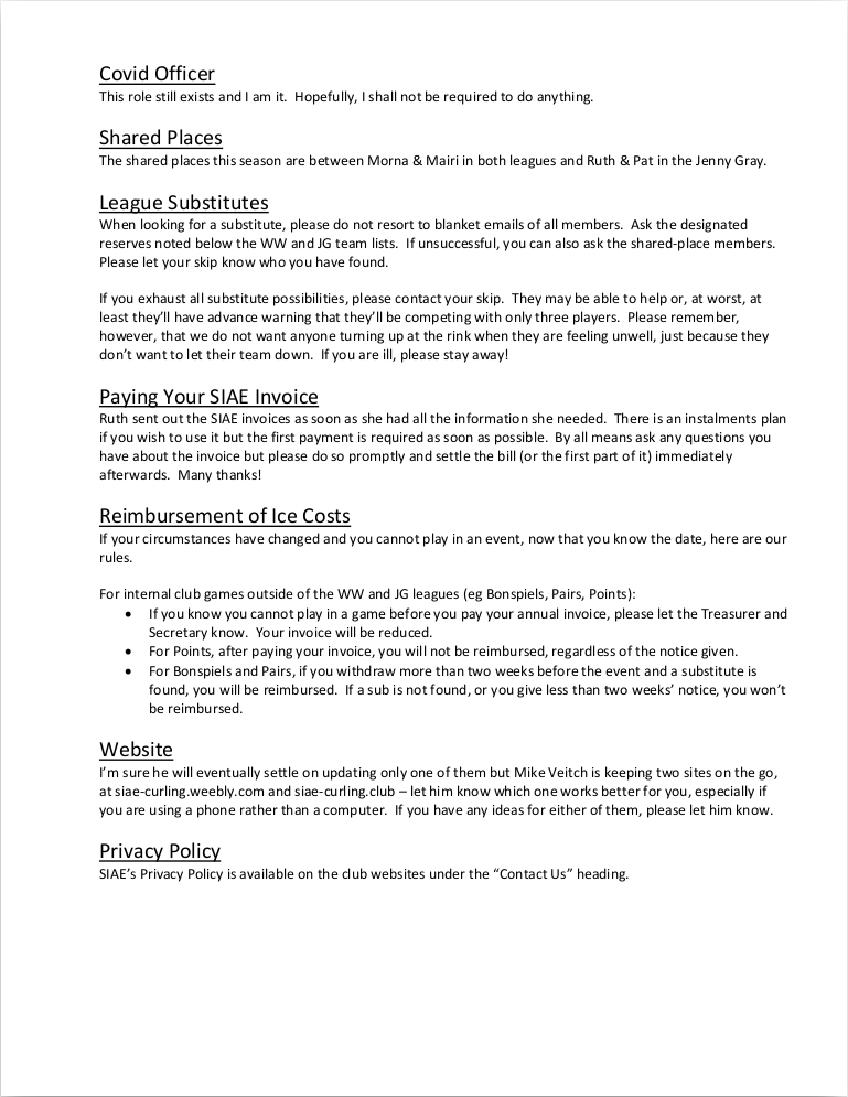 SIAE Club Secretaries