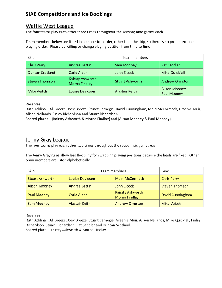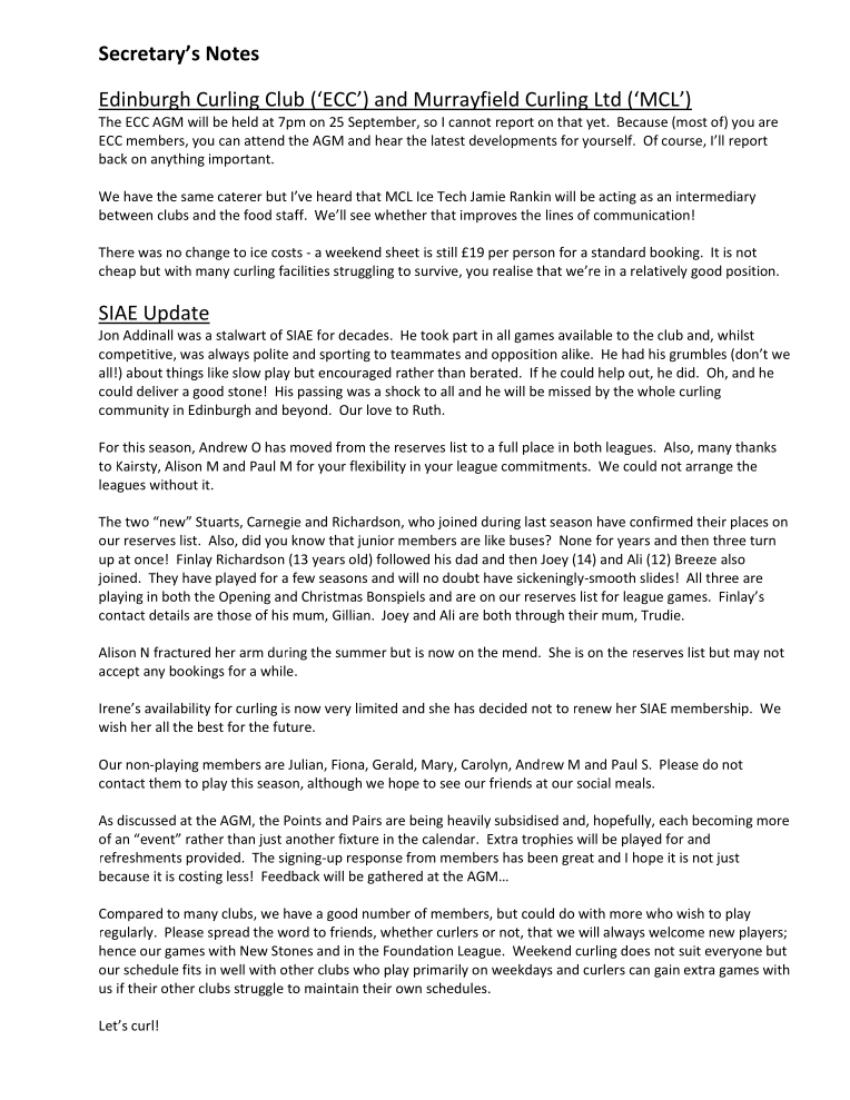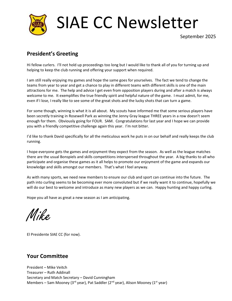History of SIAE Curling Club