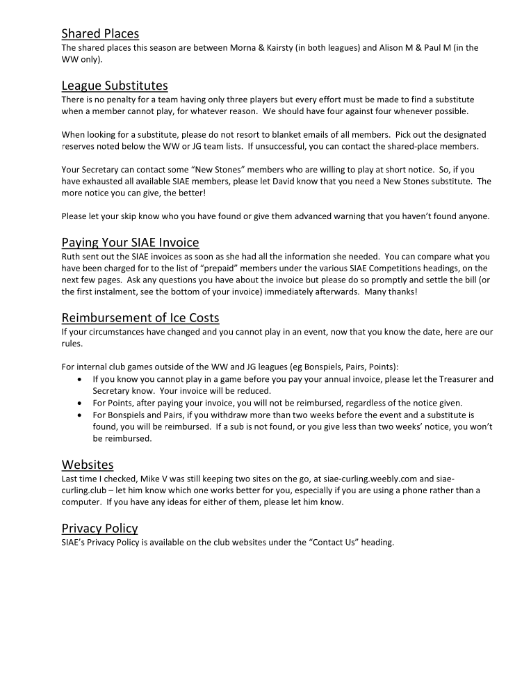 SIAE Club Secretaries